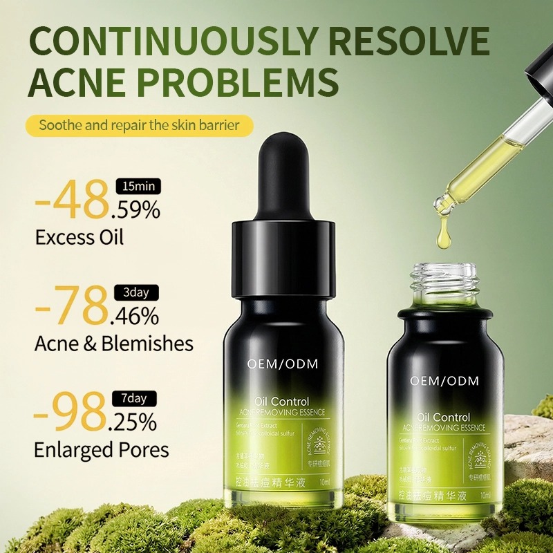 Sérum antiacne para controle da oleosidade em peles oleosas e sensíveis. O ácido salicílico e o enxofre coloidal dissolvem a oleosidade, desobstruem os poros, reduzem a vermelhidão e regulam a produção de sebo. Extratos botânicos acalmam e fortalecem a barreira cutânea. Textura aquosa, sem resíduos. Personalização OEM/ODM: fórmula, fragrância e embalagem. Certificado GMPC com rastreabilidade completa. Pronto para conformidade global.