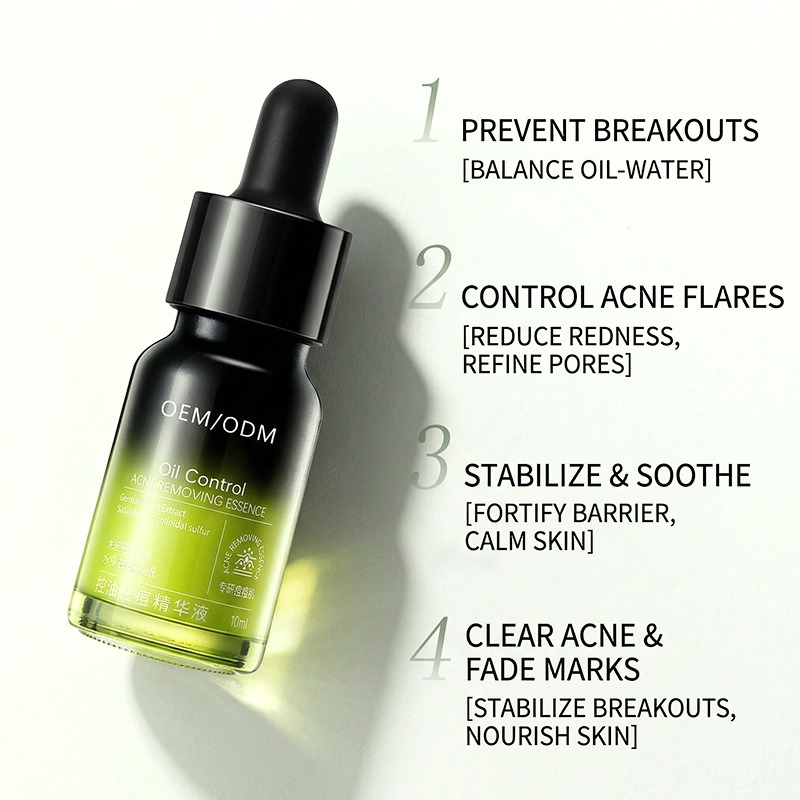 Sérum antiacne de dupla ação para peles oleosas e sensíveis. O ácido salicílico e o enxofre coloidal combatem as erupções cutâneas e o excesso de oleosidade. Uma mistura botânica reparadora fortalece a barreira cutânea. Textura leve como água e não pegajosa. Testado por dermatologistas. Suporte completo para OEM/ODM: fórmula, fragrância e embalagem. Produção em sala limpa GMPC. Em conformidade com as regulamentações globais.