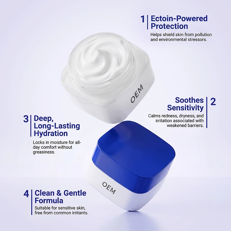 Formulado com ectoína de alta pureza, este creme barreira ajuda a proteger a pele dos agressores ambientais, proporcionando hidratação profunda e duradoura. Suaviza o ressecamento, a vermelhidão e a sensação de repuxamento – ideal para peles sensíveis e urbanas. Sua textura rica, porém não oleosa, é rapidamente absorvida. Produzido em nossa sala limpa GMPC, totalmente personalizável. Aprovado por marcas globais.