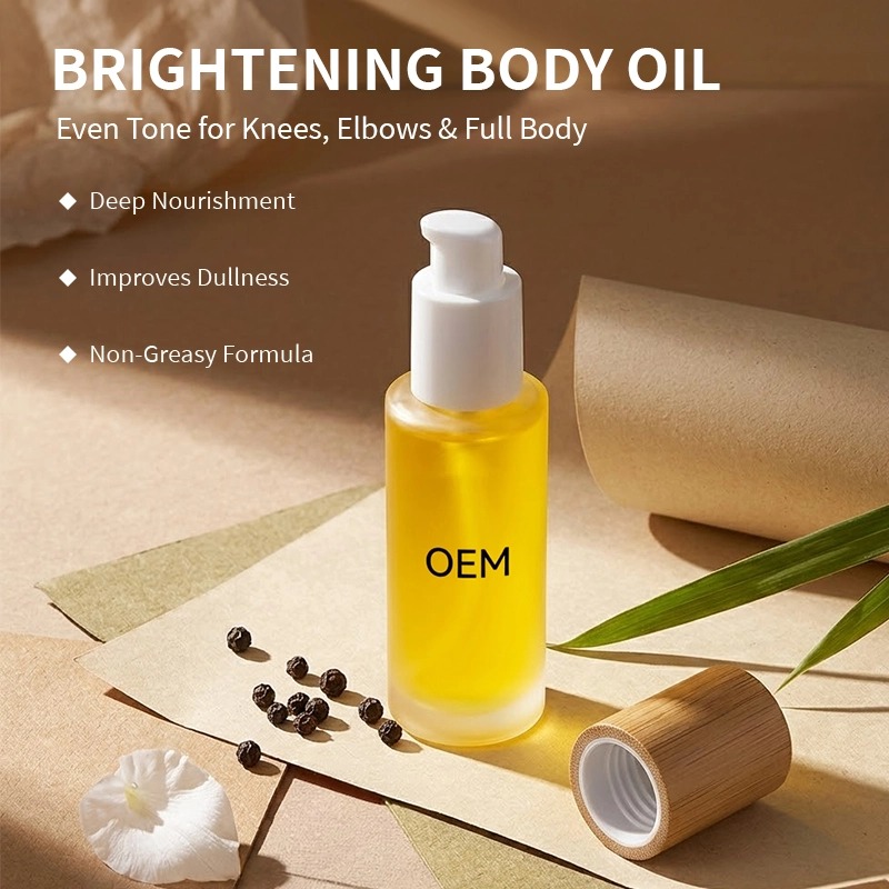 Um óleo corporal iluminador de rápida absorção que ajuda a reduzir a opacidade e uniformizar o tom da pele sem deixá-la oleosa. Enriquecido com niacinamida e derivados de vitamina C, proporciona um acabamento natural e luminoso no rosto e no corpo. Desenvolvido por nossa equipe de doutorado em P&D e em sala limpa com certificação GMPC. Quantidade mínima de pedido baixa, envio rápido de amostras. Sua fórmula, sua embalagem. Pronto para lançar um óleo corporal iluminador e natural para sua marca? Vamos conversar sobre fórmula, embalagem e quantidade mínima de pedido – amostra em 15 dias.