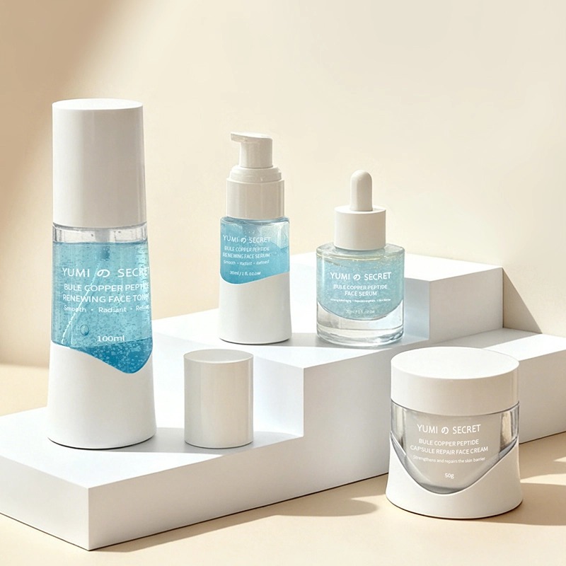 Nossa equipe de cientistas com doutorado desenvolveu a linha Blue Copper Peptide Series com tecnologia de microcápsulas — uma linha de cuidados com a pele antienvelhecimento suave, porém altamente eficaz, especialmente desenvolvida para peles sensíveis e com tendência à vermelhidão — fabricada em nossa sala limpa com certificação GMPC. Como fabricante de produtos de cuidados com a pele de marca própria, com mais de 20 anos de experiência, oferecemos suporte completo para sua marca em todas as etapas, desde o desenvolvimento da formulação inicial e integração técnica aprofundada até o design de embalagens personalizadas e a produção final.