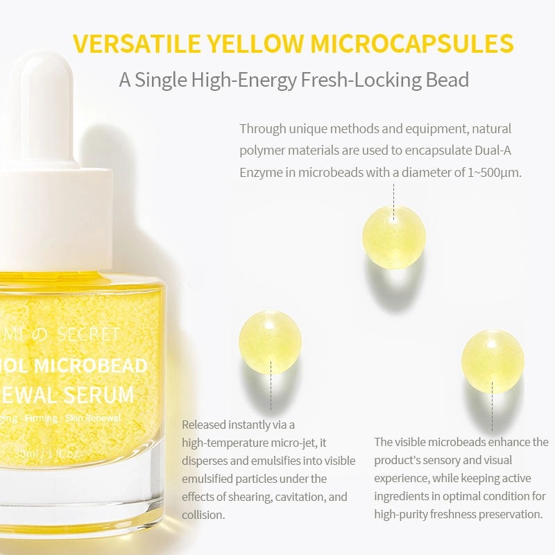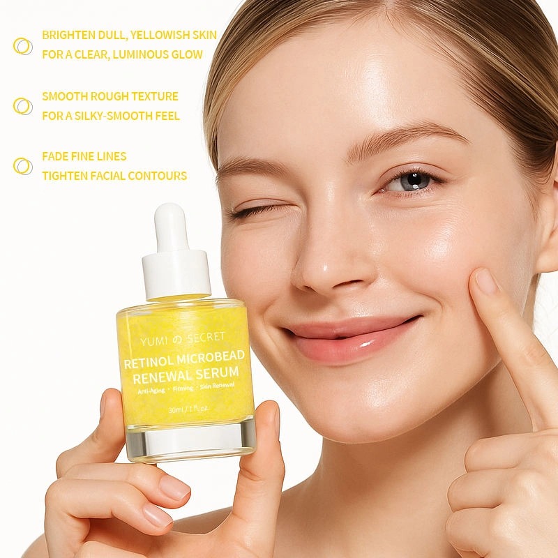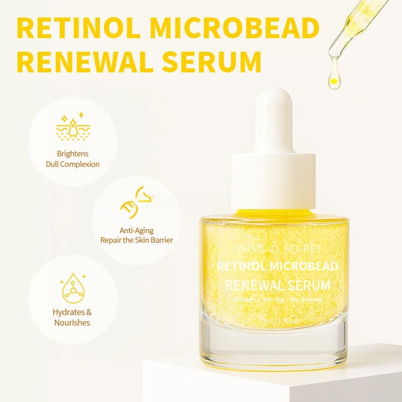 Nosso Sérum Retinol Microbead Renewal é um produto antienvelhecimento de alta eficácia com tecnologia inovadora de microencapsulação que preserva o frescor. Formulado com retinol, Pro-Xylane, peptídeos de colágeno e diversos ingredientes calmantes, proporciona firmeza, redução de rugas, luminosidade, hidratação e reparação da barreira cutânea. Com textura leve e adequada para todos os tipos de pele, oferecemos serviços completos de personalização OEM/ODM.