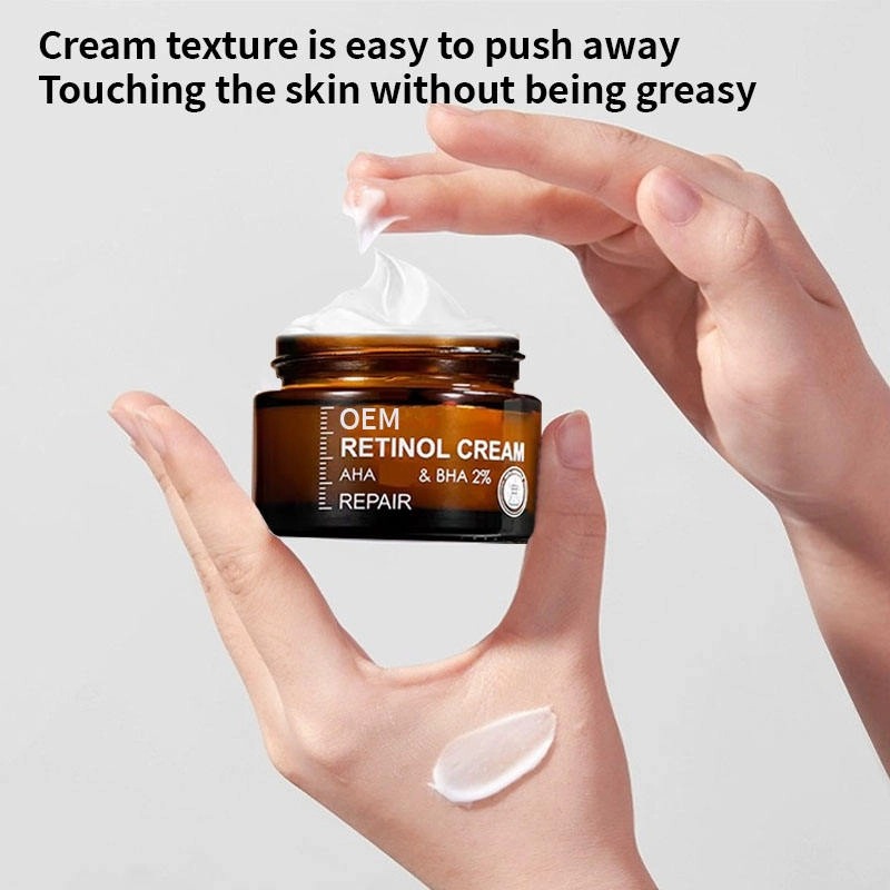 Nosso creme de retinol com marca própria é indispensável para peles sensíveis e secas, proporcionando hidratação profunda e reduzindo eficazmente linhas finas e rugas graças à sua fórmula suave com retinol. Com uma textura leve e não oleosa, de rápida absorção, é ideal para uso diário. Além disso, oferece personalização completa OEM/ODM, incluindo ajustes na fórmula, design de logotipo e embalagem, para atender às necessidades específicas da sua marca e expandir sua atuação no mercado global.