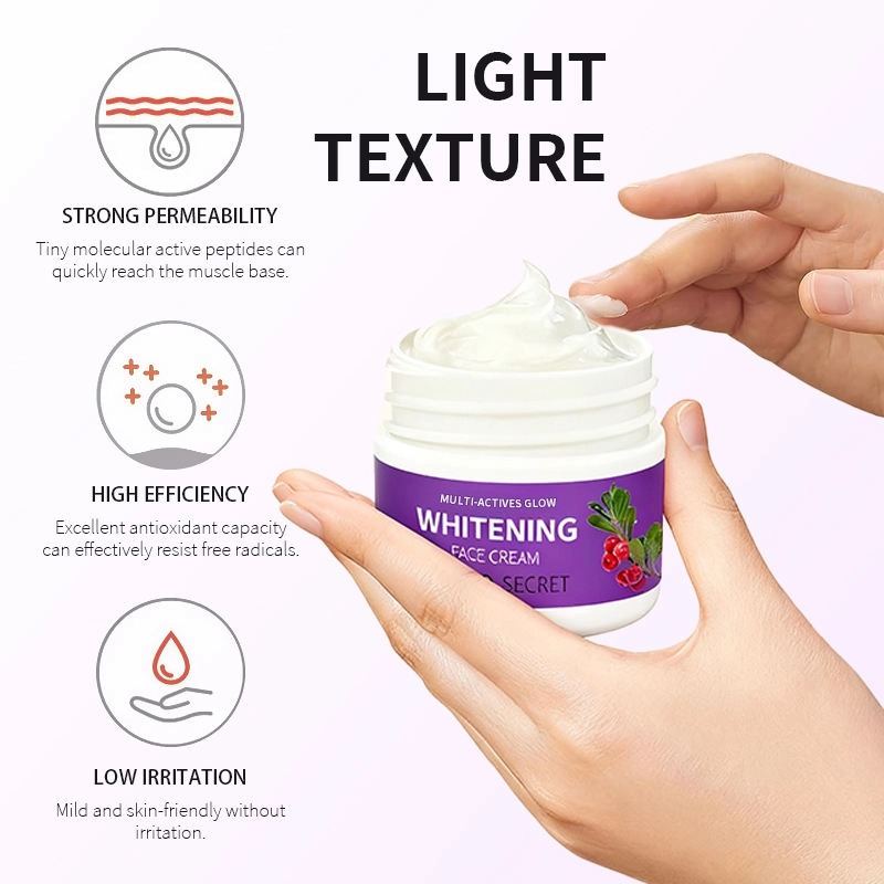Nosso Creme Facial Clareador Tailandês de 7 Dias funciona no rosto e no corpo, sendo adequado para homens e mulheres de todos os tipos de pele. Enriquecido com niacinamida, arbutina, extrato de mamão papaia e glutationa, proporciona clareamento visível em 7 dias, atenuando manchas escuras e a opacidade. A fórmula leve e não oleosa hidrata profundamente, repara a pele seca e é livre de álcool, óleo mineral e parabenos. Dados clínicos comprovam que aumenta a hidratação em 96,95% e atenua manchas em 78,47%. Vendas por atacado e OEM/ODM disponíveis.